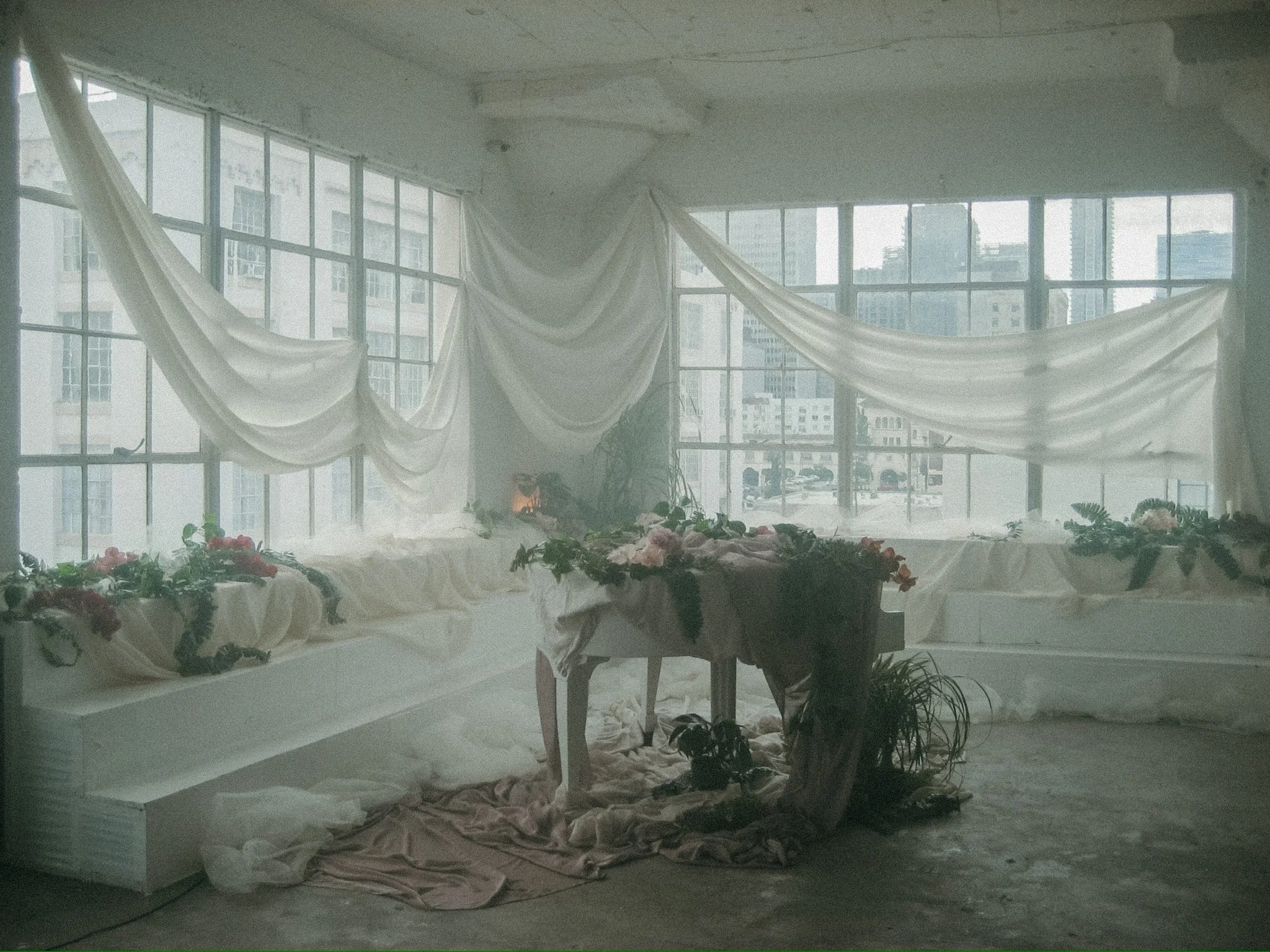 set dress a music video setting for a live piano recording for artist, Holly Beth’s song, “Flowers”